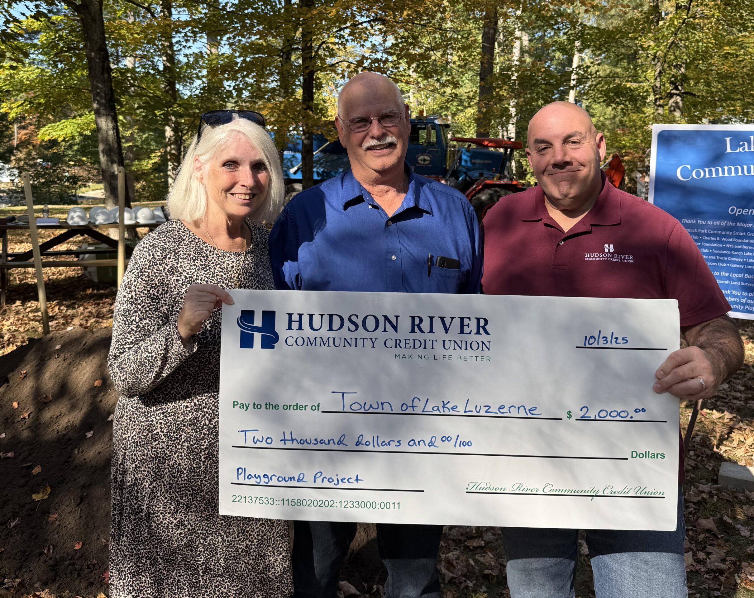 At Hudson River Community Credit Union (HRCCU), we’re committed to supporting initiatives that strengthen our communities and create lasting impact for local families. That’s why we’re proud to announce a $2,000 donation to the Town of Lake Luzerne in support of the new Lake Luzerne Destination Playground at Butler Park.