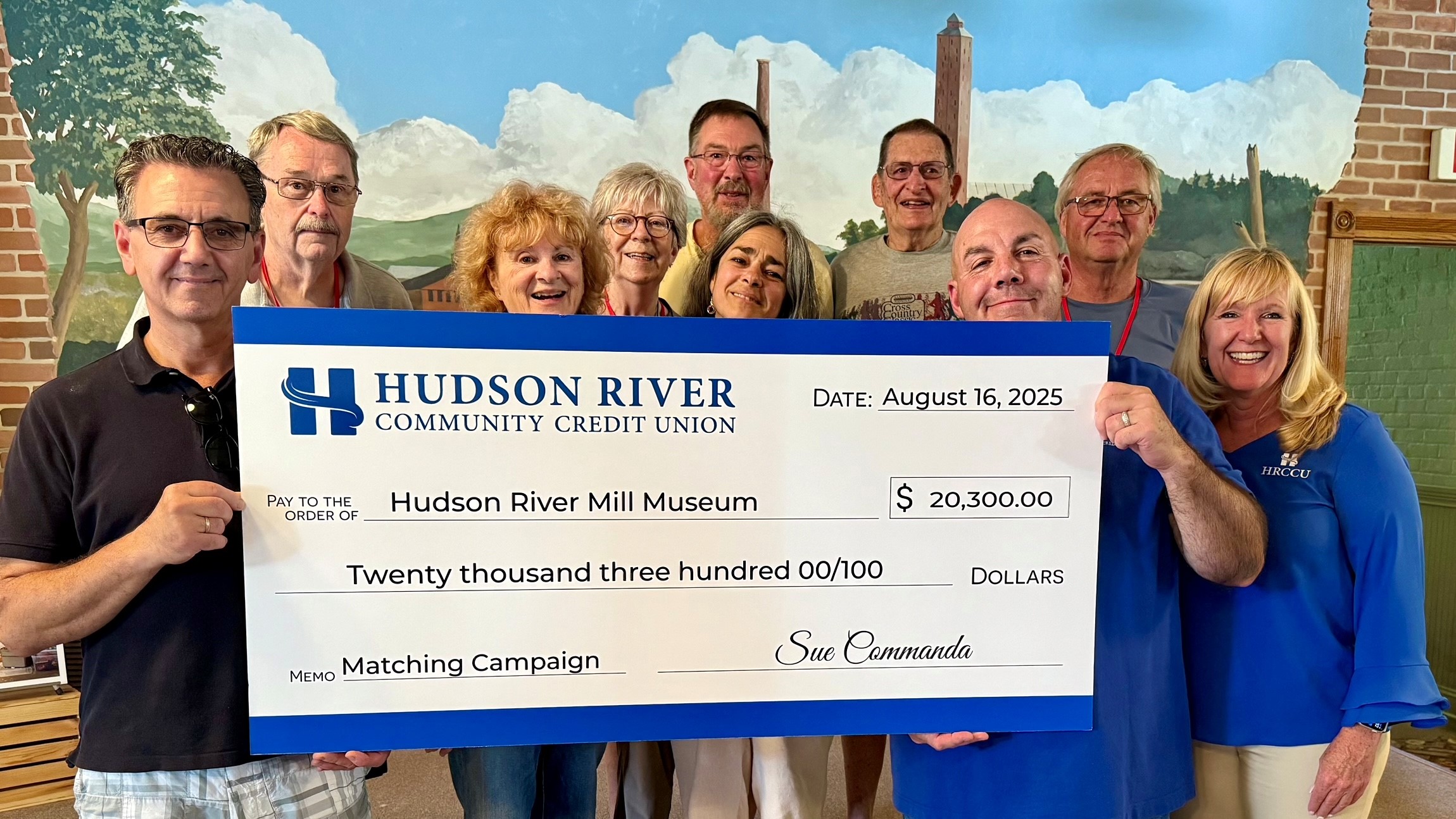 “The Hudson River Mill Museum is grateful to Hudson River Community Credit Union for its continued support,” said Laurie DeLong, Board President of the museum. “The ties between the museum and the credit union go back almost 70 years, when the credit union started in a corner of this very building. Through this matching campaign, HRCCU has helped ensure we can continue the restoration of a space that means so much to all of us.”